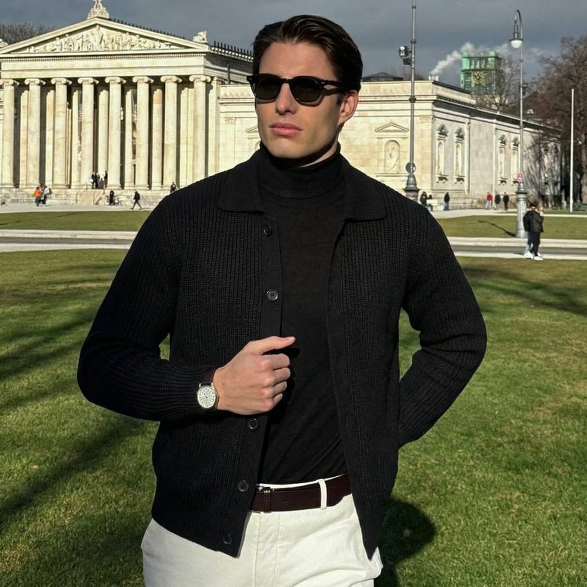 Les cardigans Lodance sont portés par des hommes qui incarnent élégance, présence et assurance — naturellement.